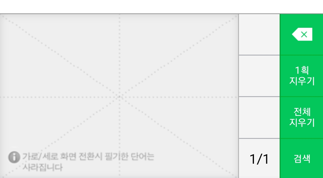 한자와 팬이 그려진 그림을 클릭합니다. 아래쪽 회색의 필기 인식기 화면에 손으로 한자를 적습니다. 혹시 한자를 적다가 틀리면 "1회 지우기", "전제 지우기"를 사용 하서 다시 쓸 수 있습니다.