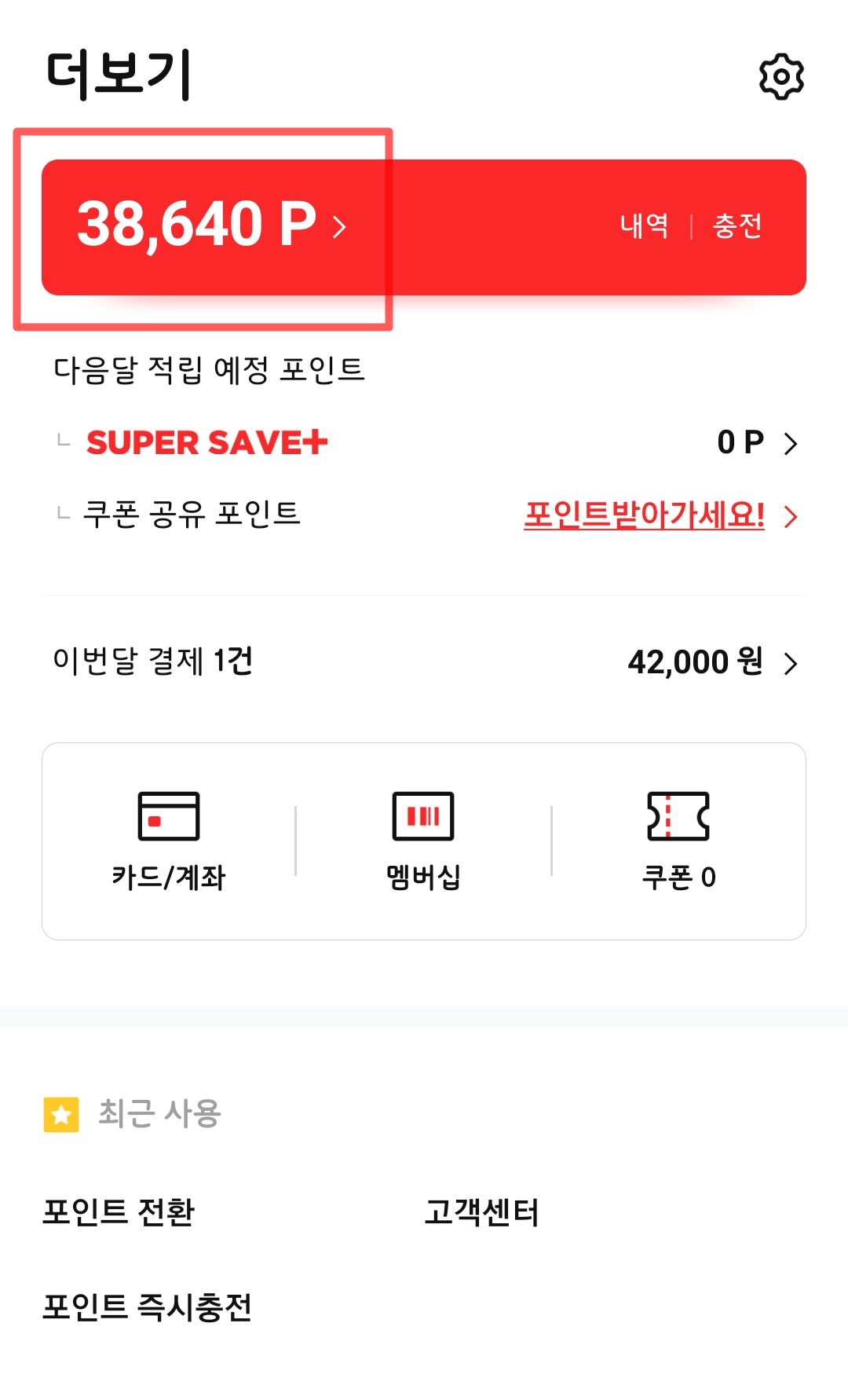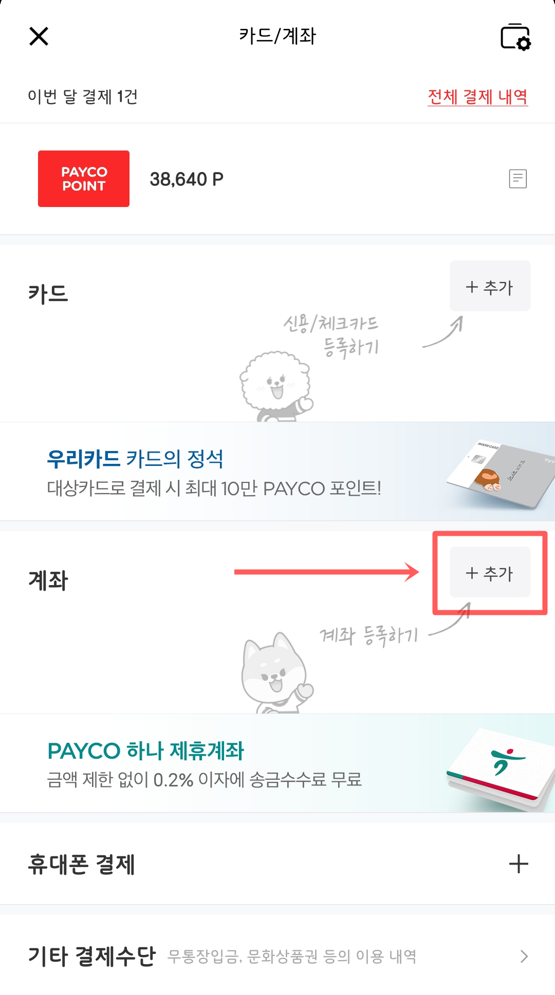 더보기 화면에서 카드/계좌를 선택해줍니다.