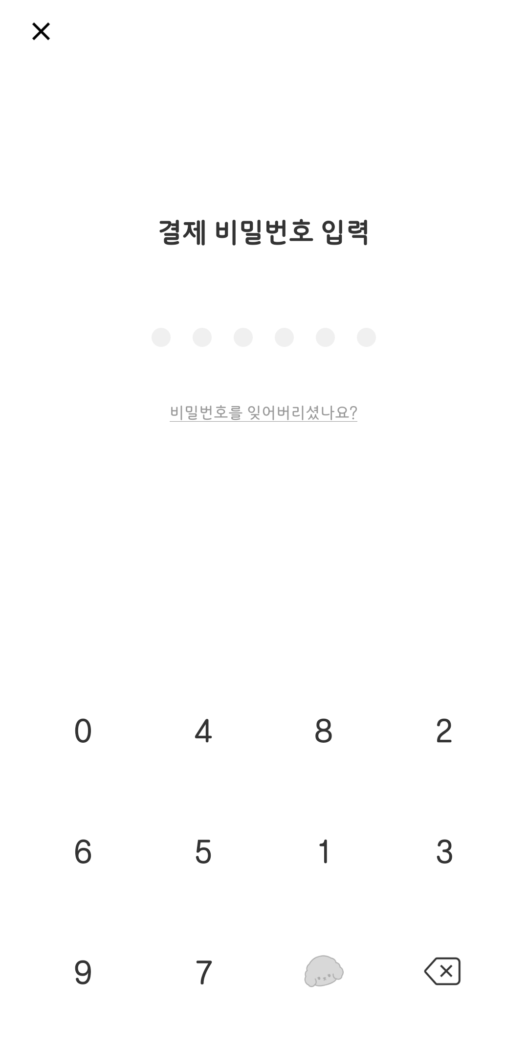 페이코 결제 비밀번호 등록이 완료되었습니다. 이제 다시 결제 비밀번호를 입력해줍니다.