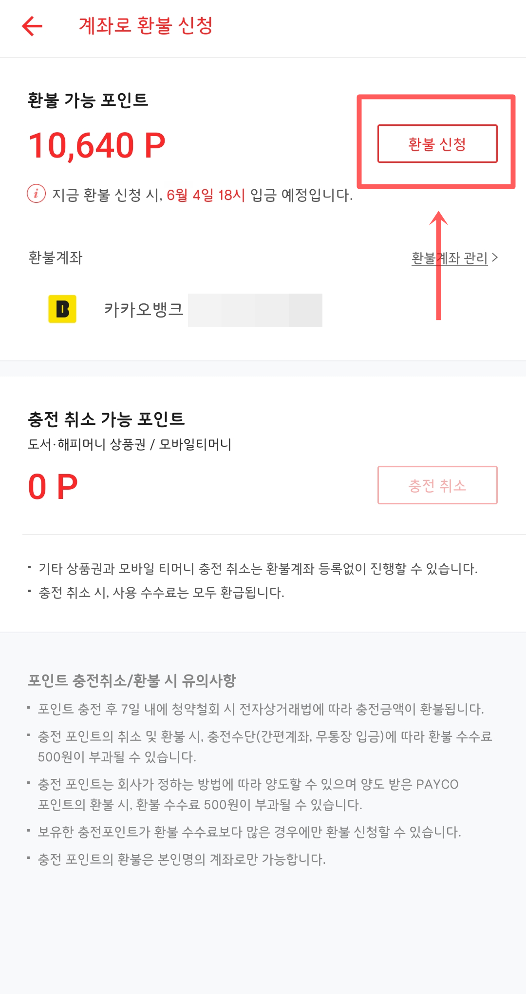 이제 페이코 환불 방법입니다. 페이코에서 환불을 받으려면 우선 계좌가 등록이 되어 있어야 하고, 충전한 금액의 일부를 사용하셔야 환불을 받을 수 있습니다.