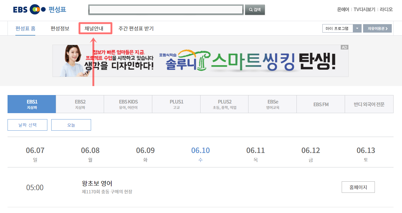 EBS 플러스2 편성표 보는 방법