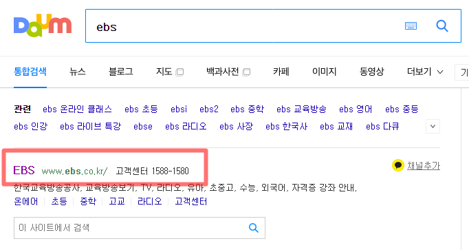 EBS 플러스2 편성표를 보기 위해서는포털 사이트 검색창에 "EBS"를 먼저 검색합니다.