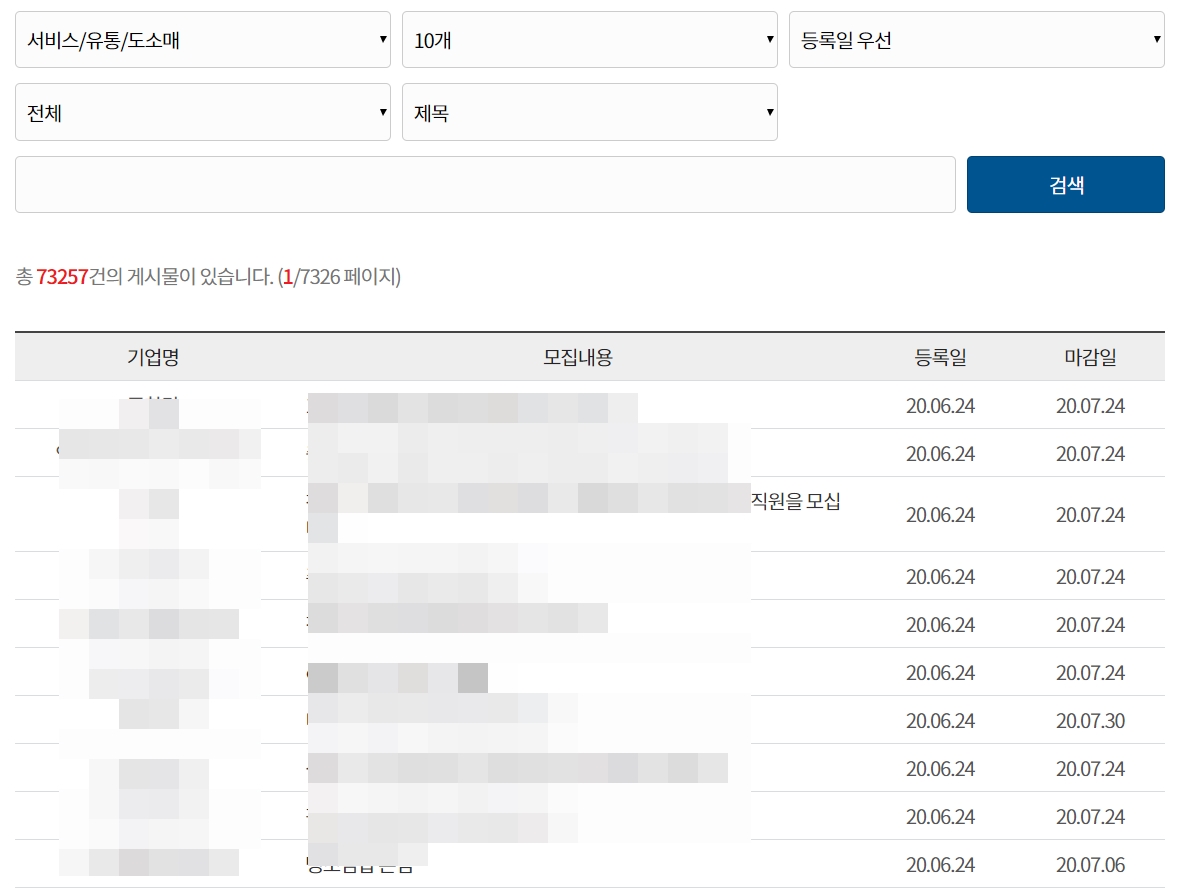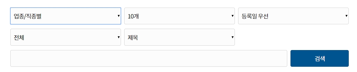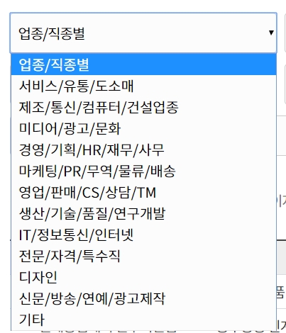 업종/직종별은 선택하시고 검색을 하시면 자신이 원하는 업종으로 압축이 되어서 결과가 나옵니다.
