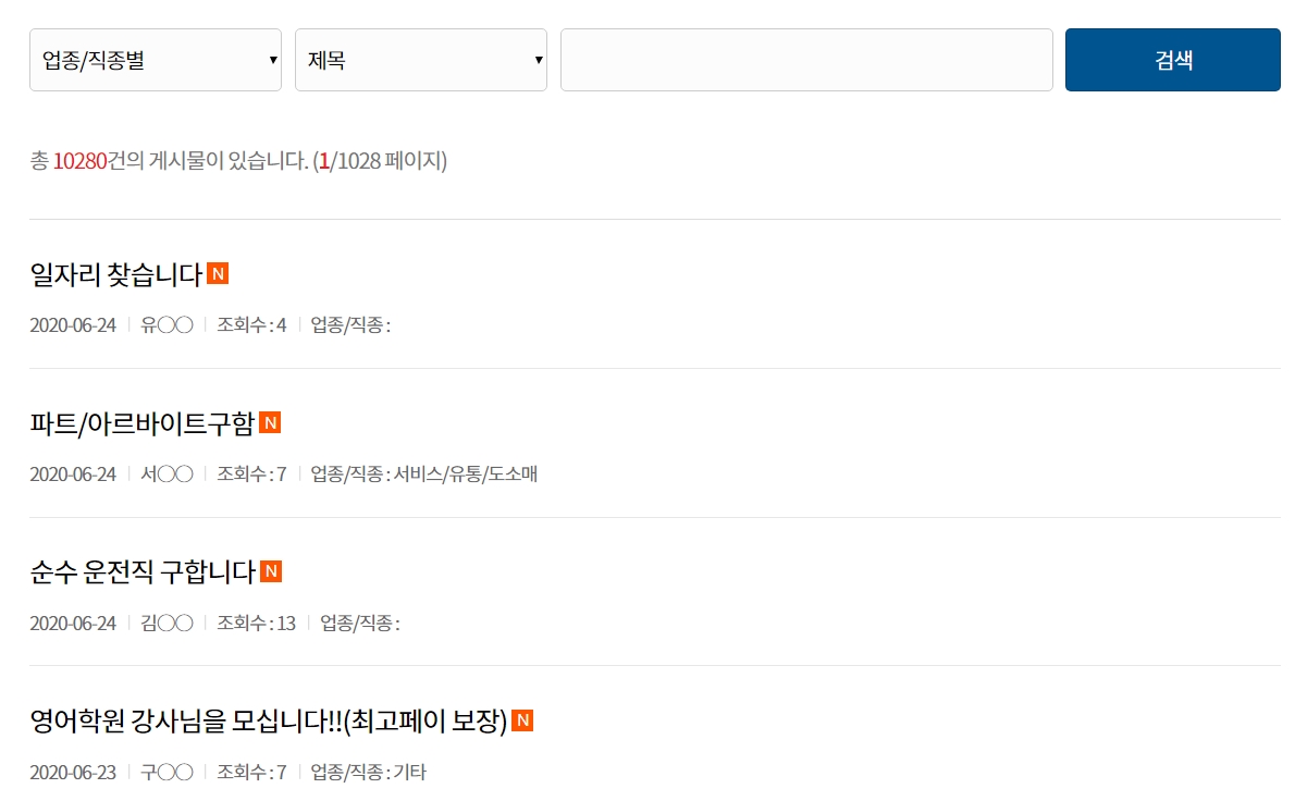 아르바이트 게시판 역시 자신에게 맞는 업종을 선택해서 검색을 하면 됩니다. 자세한 내용을 게시글을 클릭해서 보시면 됩니다.