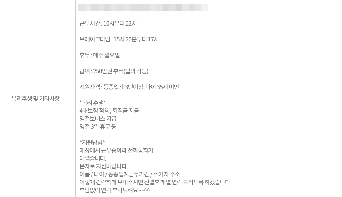 자세하게 올리셔도 되고, 중요한 사항이나 꼭 필요한 조건 등을 적어서 올리시면 됩니다. 예를 들어 일하는 시간대라던가 요일 등 입니다.