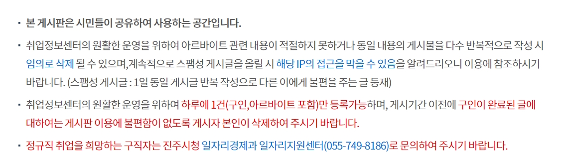 아르바이트 게시판도 하루 1건만 등록이 가능하고, 구인이 완료된 글에 대해서는 게시자 본인이 삭제를 해주셔야 합니다.