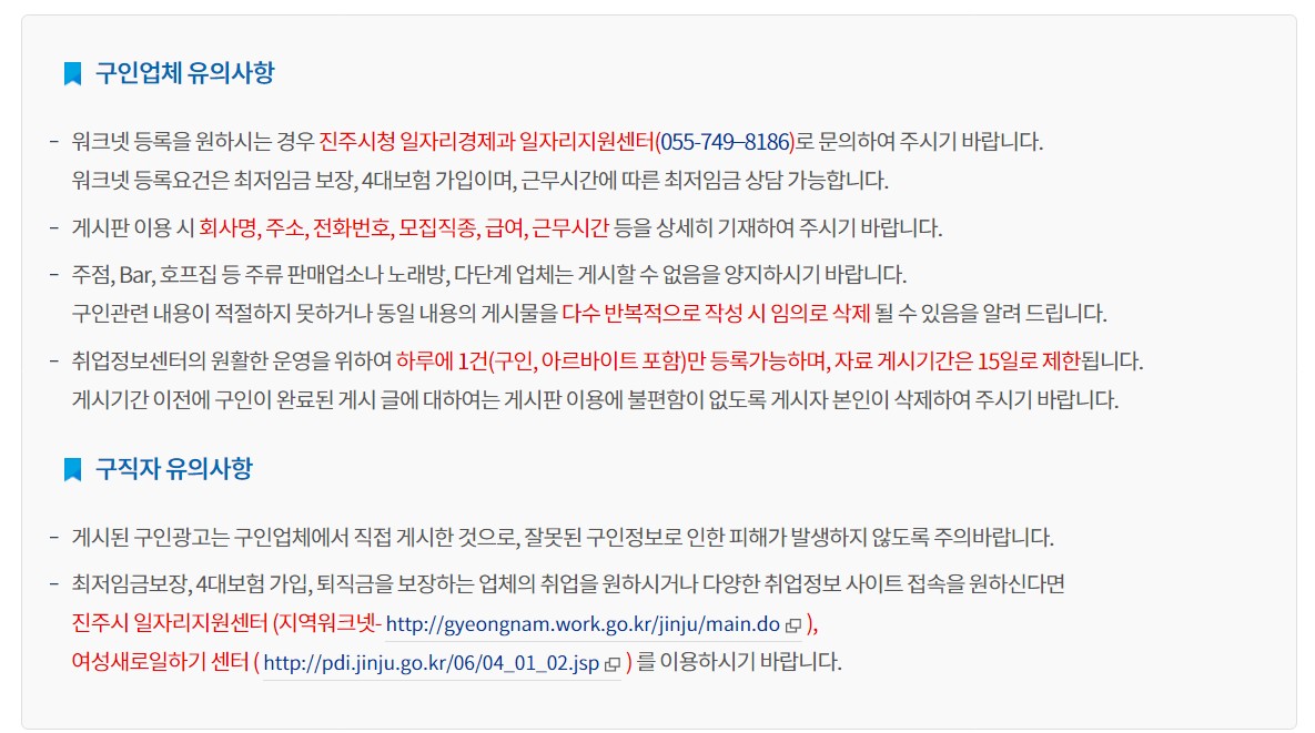 구인업체의 유의사항