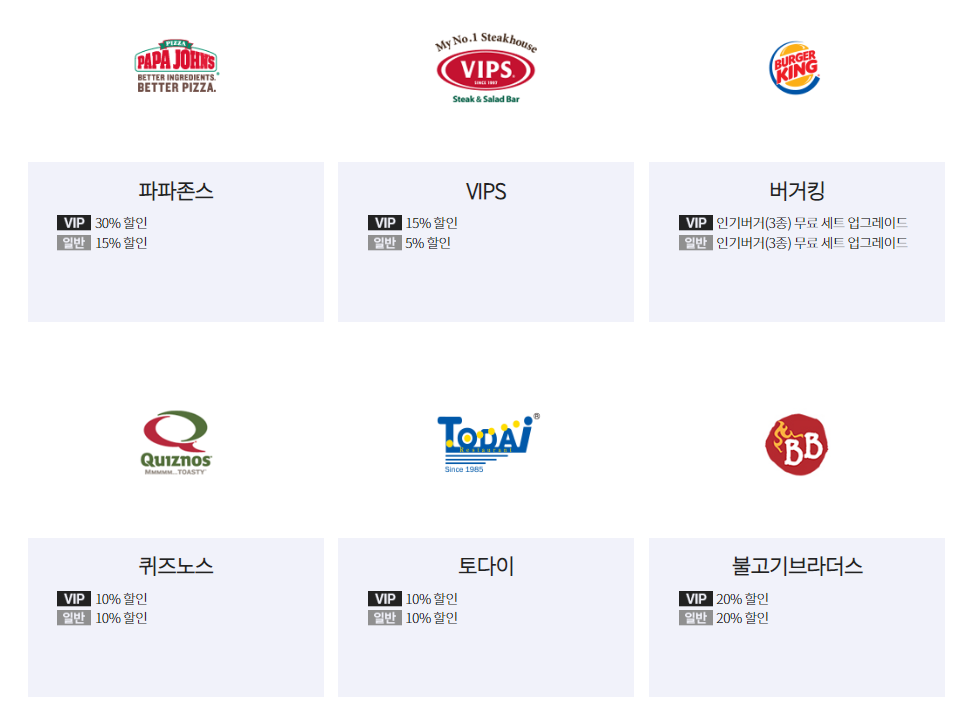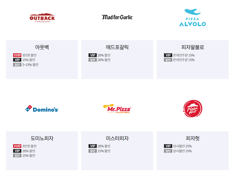 외식은 아우백, 매드포갈릭 등 KT 포인트 사용처가 16곳에서 사용이 가능합니다.