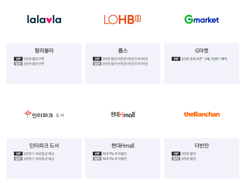 쇼핑에는 G마켓, 인터파크, 현대Hmall, 미샤, 현대백화점, ABC마트 등 KT 포인트 사용처가 16곳이 있습니다.