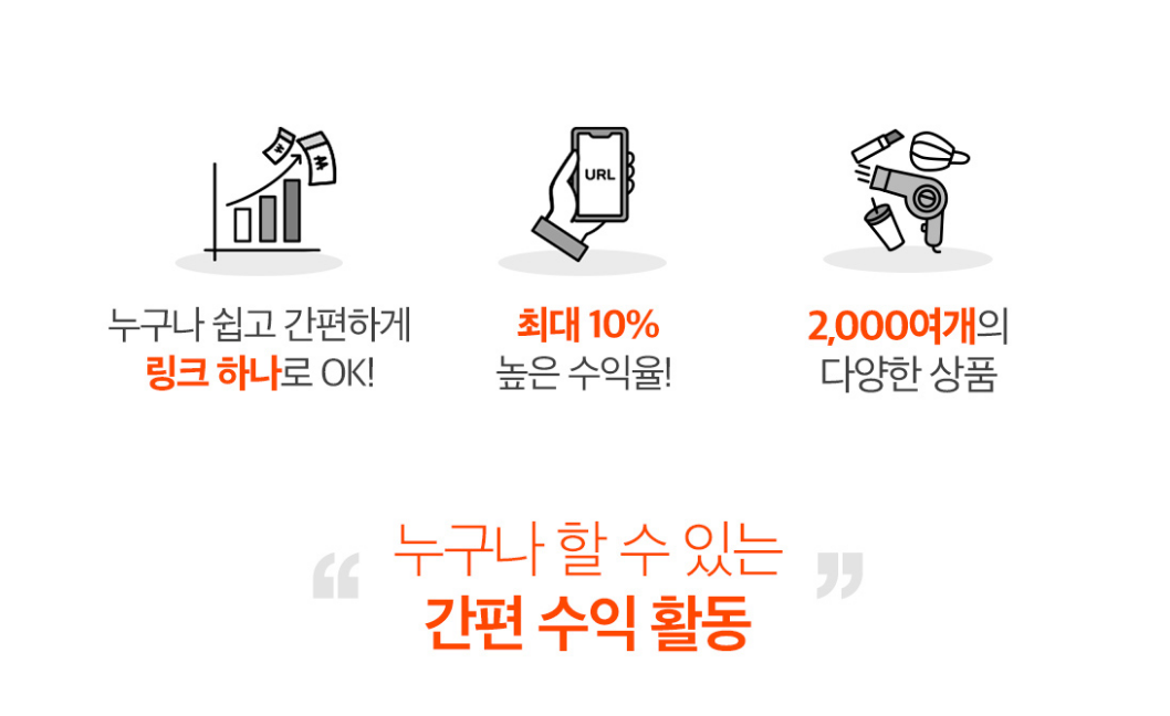 클릭을 하면 10원을 받고, 상품을 구입하게 되면 5~10%를 받습니다.