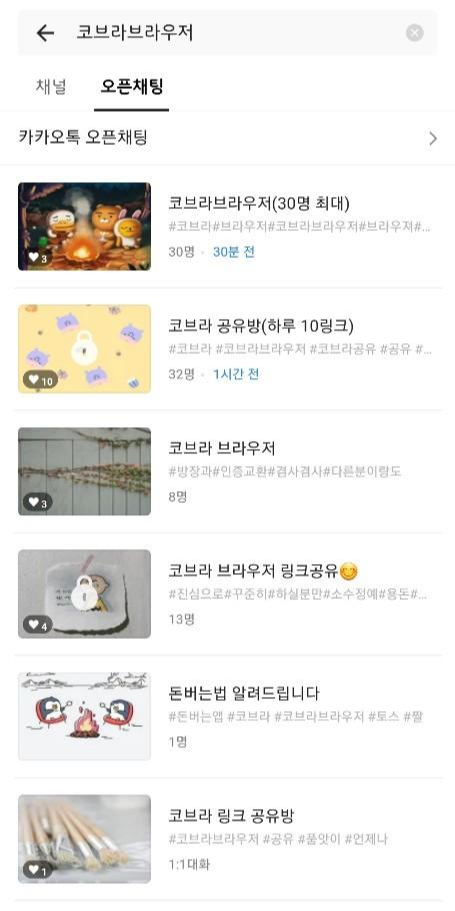 여기서 우리는 친구들끼리 서로서로 하는 방법을 바로 생각할 수 있습니다. 하지만, 이런 품앗이 활동은 어느 정도 하다 보면 안 하게 되는 경우가 많아져서 오래 지속되는 경우가 줄어듭니다. 그래서 카카오톡 오픈채팅이나 카페에 코브라 브라우저가 설치되신 분들이 모여있고, 지속적으로 신규 가입자들이 모여드는 이 두 곳을 추천해 드립니다.