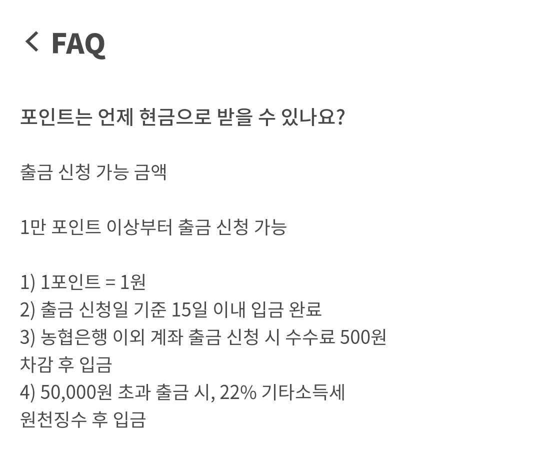 농협은행 이외 계좌 출금 신청 시 수수료 500원 차감 후 입금됩니다.