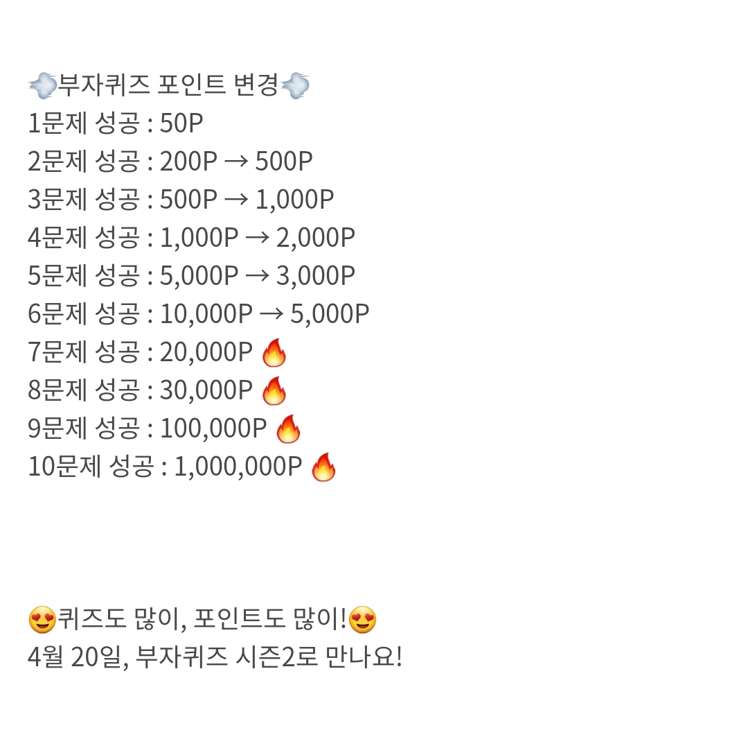 현재 부자퀴즈가 시즌 2로 최대 문제 수 10개까지 가능합니다.(이건 골드 퀴즈 선택 시)