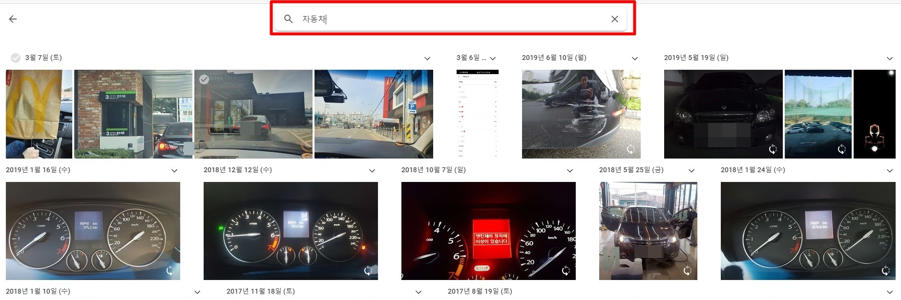 이렇게 "자동차"라고 검색을 하면 내가 집적 찍은 자동차에 관한 사진을 검색을 해서 보여줍니다. 이 중에서 자신이 원하는 사진을 선택해서 블로그 글을 쓸 때 넣어서 사용하면 됩니다.