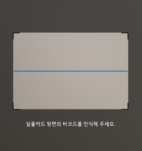 "카드 등록"을 클릭하고 실물 카드 뒷면의 바코드를 인색해줍니다.