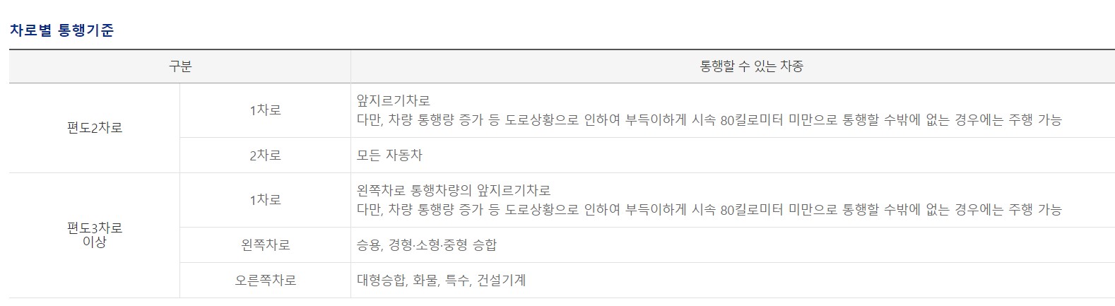 왼쪽차로는 승용,경형.소형.중형.승합