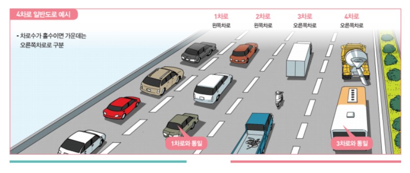 1차로는 왼쪽차로 통행차량의 앞지르기 차로