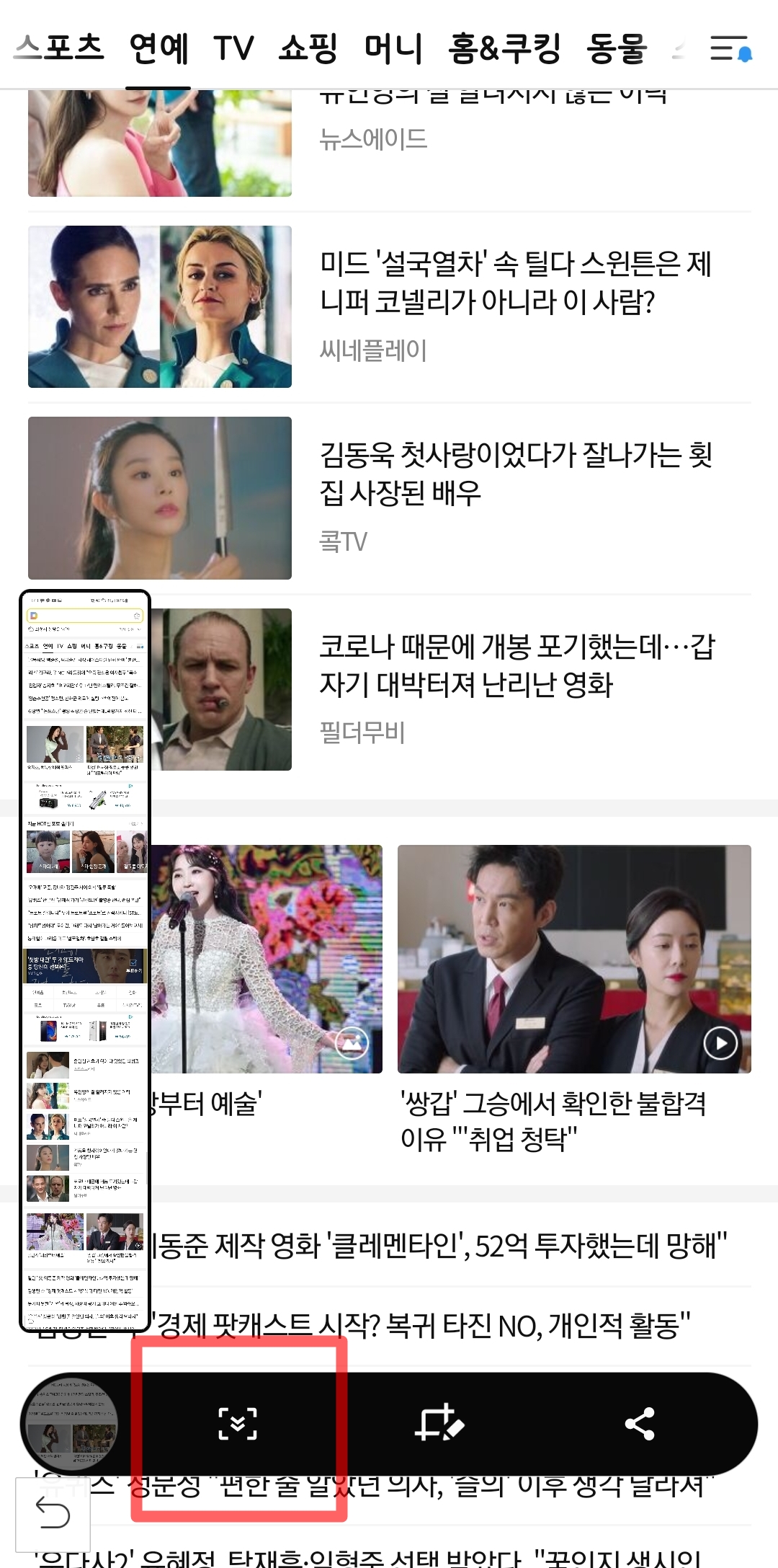 갤럭시 스크롤 캡쳐 및 전체화면 스크린샷 방법